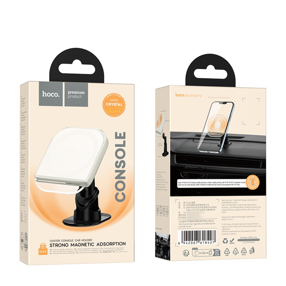 Автотримач Hoco H43 магнітний, White