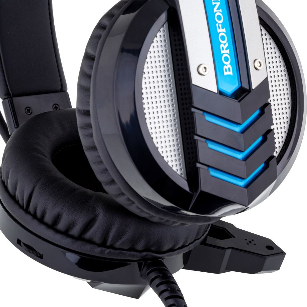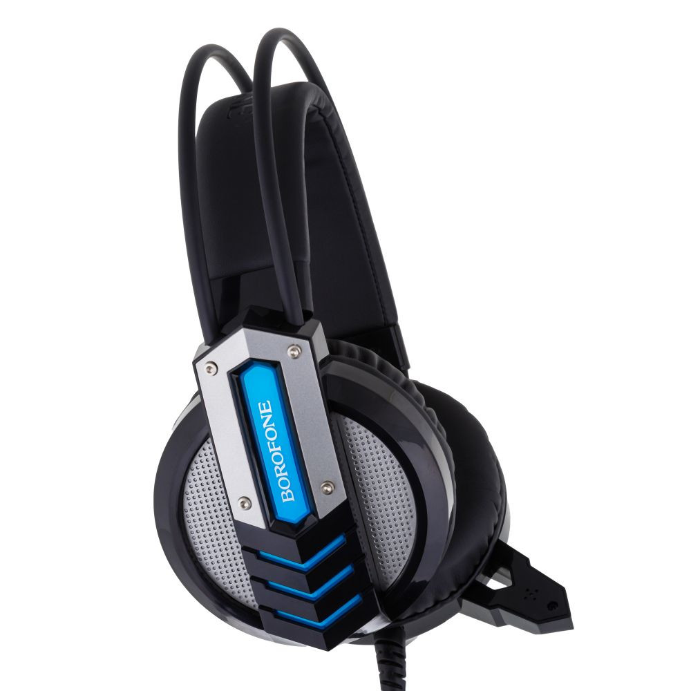 Навушники Borofone BO100 PC Fun допоможуть отримати справжнє задоволення від ігрового процесу і прослуховування музики. Потужні динаміки гарантують чисте, деталізоване звучання, а всенаправленний мікрофон - реалістичну передачу мови, під час спілкування з партнерами по грі і здійснення онлайн дзвінків. Модель реалізована в оригінальному футуристичному дизайні, поставляється в стильній брендовій упаковці. Гарнітура має надійну збірку, для виготовлення корпусу використовується міцний пластик. Обід пристрою являє собою конструкцію що складається з двох дуг і додатковою фіксацією з екокожі, підлаштовується під розмір голови. М'які амбушюри обшиті приємним на дотик матеріалом, забезпечують комфорт в повсякденному використанні. Модель оснащена LED підсвічуванням, кабелем на одній точці кріплення з регулятором гучності і роз'ємами AUX і USB. Довжина кабелю - 2,4 м. Комплект складається з навушників, перехідника AUX і інструкції. Оцініть переваги бренду Borofone в оптових продажах.Характеристики