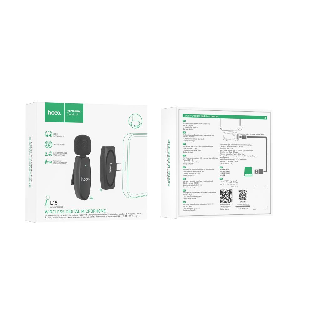 Мікрофон петличний бездротовий Hoco L15, Type-C, Black