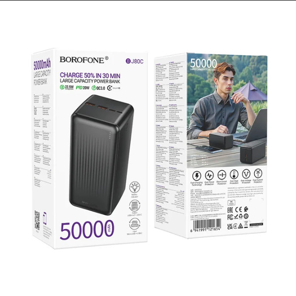 Універсальна мобільна батарея Borofone BJ80C Clever, 22.5W, PD20W, 50000mAh, Black